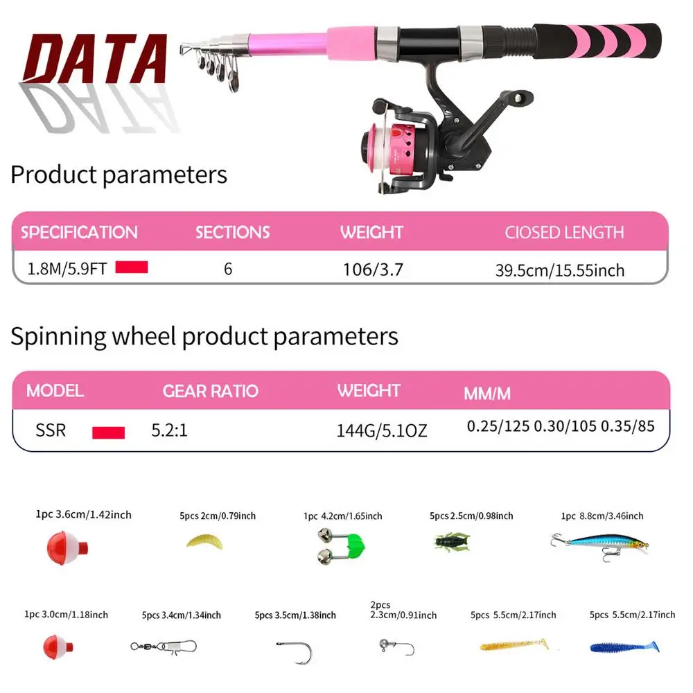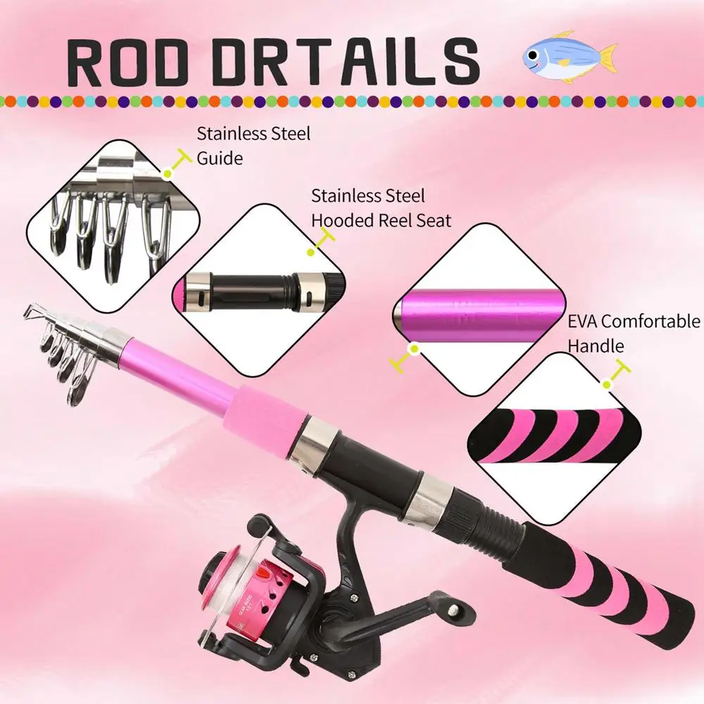 1.All-Around Fishing Set: Designed specifically for kids, this fishing rod kit includes various lure accessories suitable for different fishing situations, as well as a travel bag for easy storage and transport, wonderful for young anglers to learn