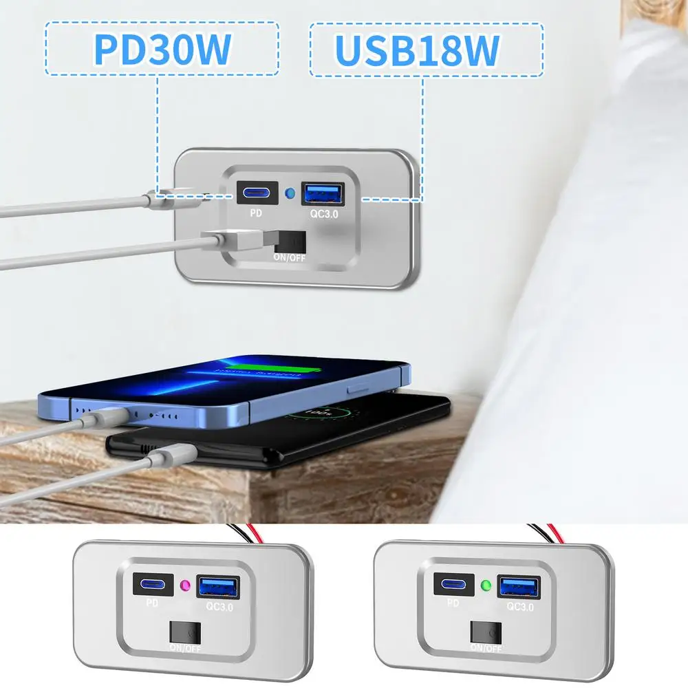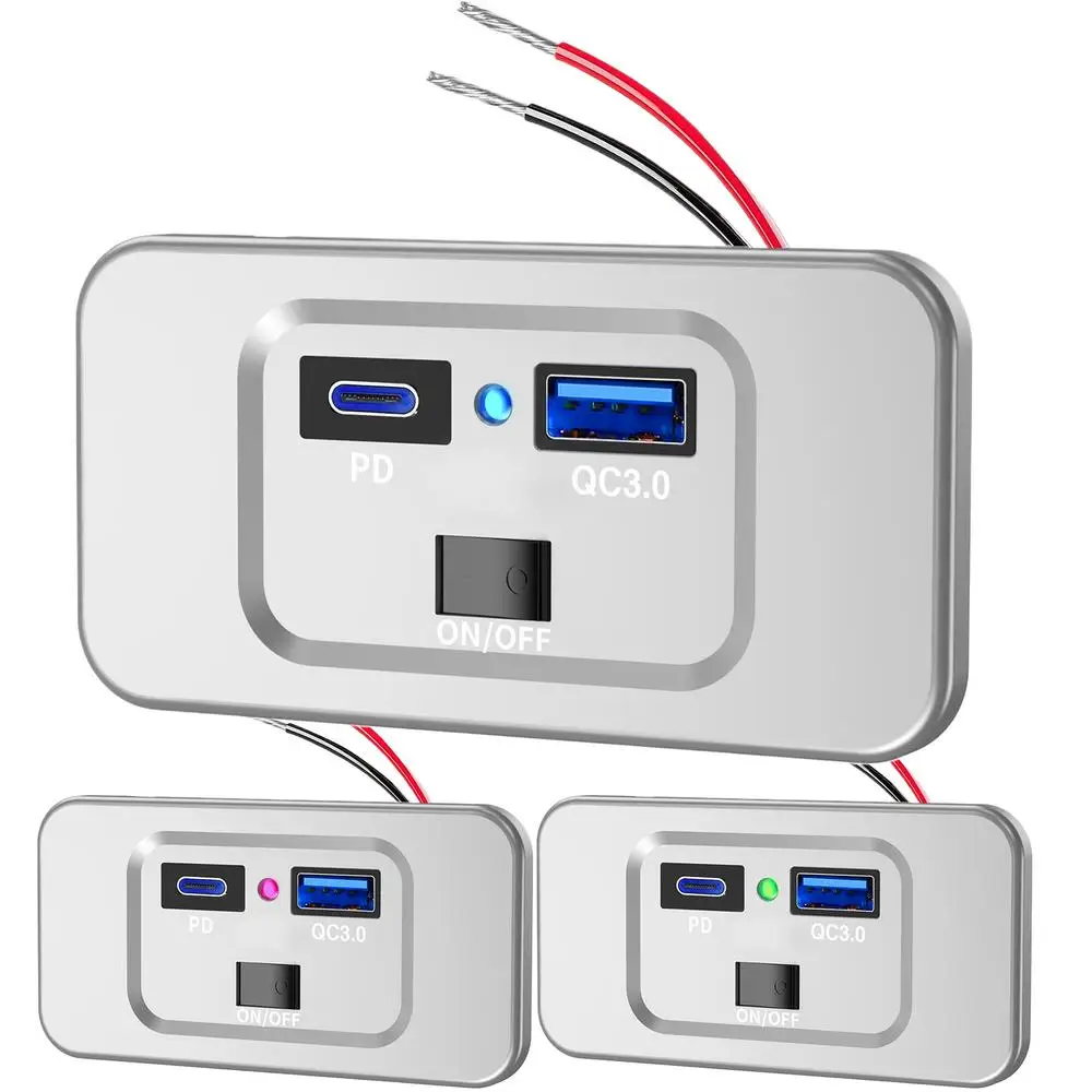 1.Adaptive Performance: Featuring QC3.0 and PD3.0, this RV USB outlet intelligently identifies your device's needs, providing 3A/2A/1.5A current or 5V/9V/12V voltage automatically.