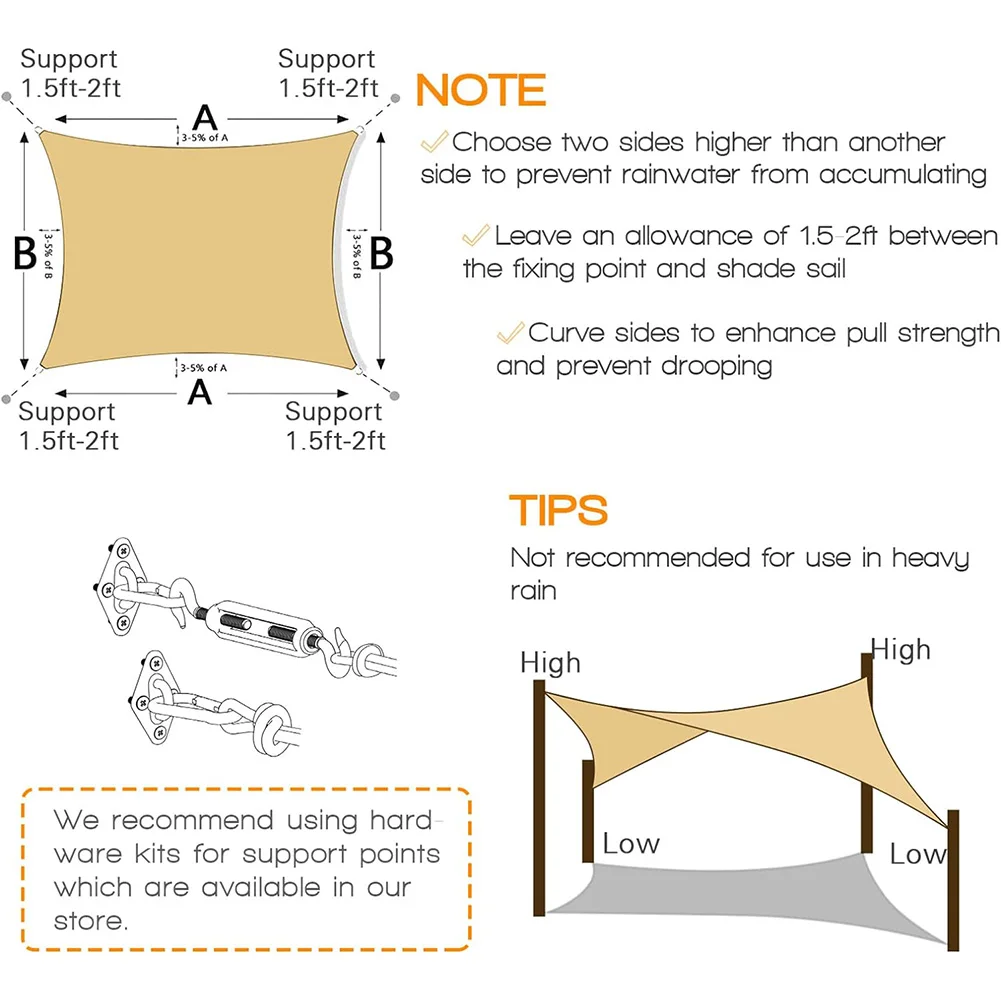 5. Breathable Fabric: The pergola shade cover canopy keeps air fresh by allowing hot air to escape and water to pass through. It can be easily cleaned with a garden hose, making maintenance a breeze. Note: Due to the fabric's elasticity, edge lengths may vary slightly with manual measurement, but the fabric area remains consistent.