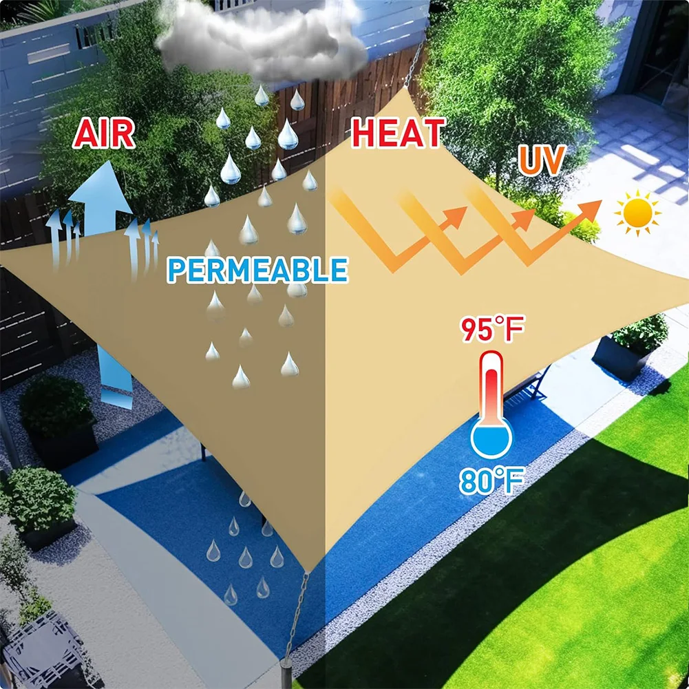 1. 50% Shading Rate: Our outdoor sun shade cloth blocks light and most sunlight while allowing air to pass through, creating a comfortable, cool shaded area for people or plants. It provides 50% sunlight blockage and 50% shade.